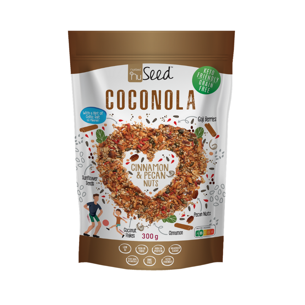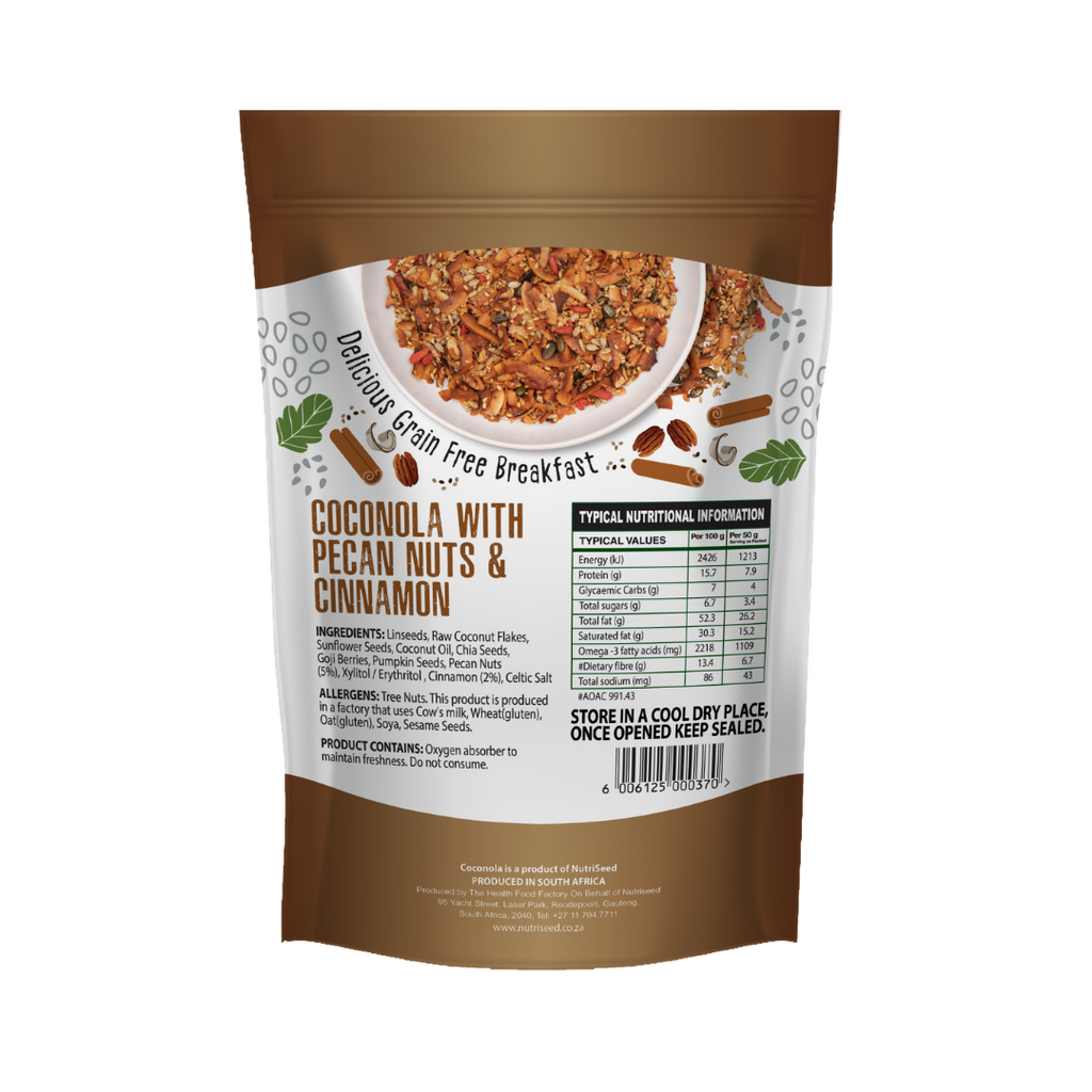Coconola – Perfect Pecans & Spicy Cinnamon is a delicious and nutrient-packed granola blend crafted to balance your day. Designed for pancake lovers and health enthusiasts alike, this wholesome combination of coconut flakes, pecans, linseeds, chia, pumpkin, and sunflower seeds delivers a satisfying crunch while being rich in healthy fats and fiber. The addition of dried goji berries and cinnamon offers a burst of fruity tang and powerful antioxidants to boost your wellness journey Properties: