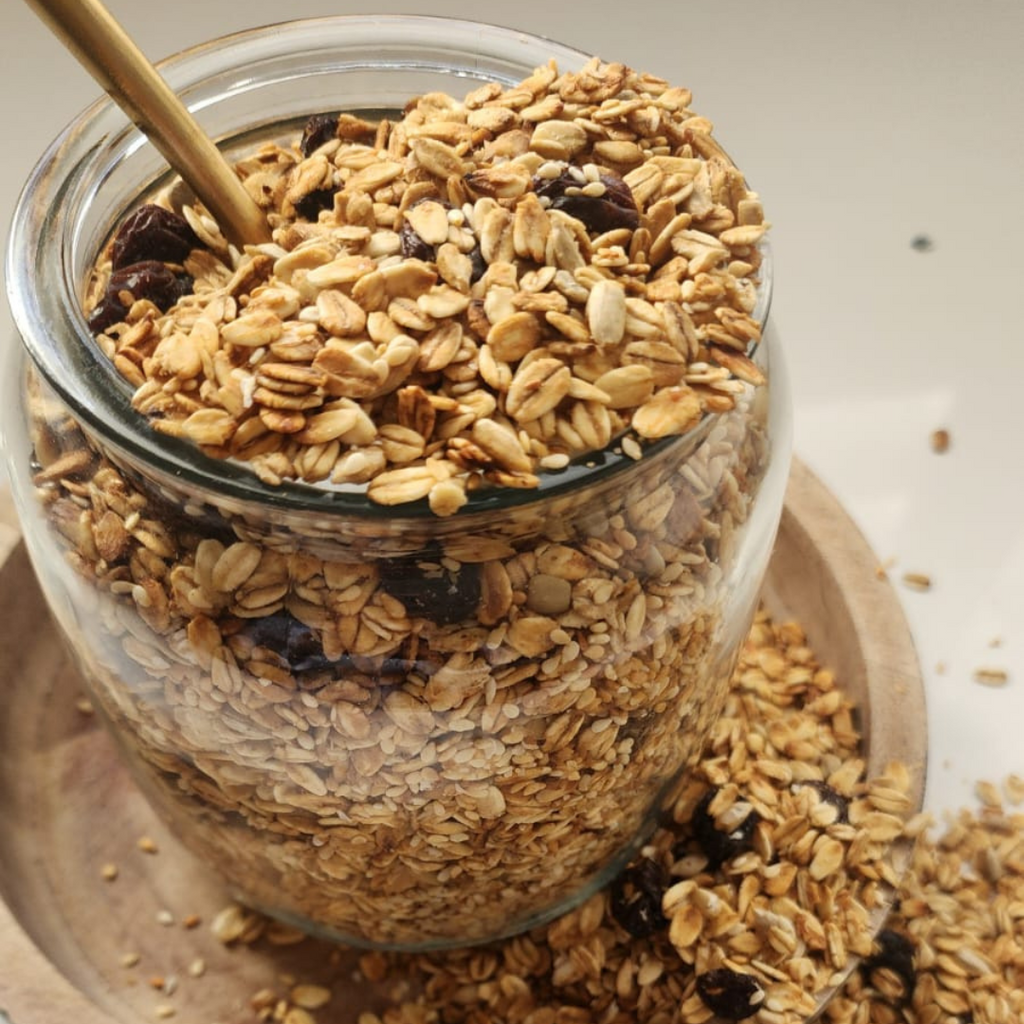 Start your day with our delicious and nutritious Honey Muesli. This wholesome blend of rolled oats, raw honey, raisins, sunflower seeds, and sesame seeds provides a high-energy, high-protein breakfast that is also a great source of dietary fiber. Perfect for health-conscious individuals looking for a balanced and satisfying meal.