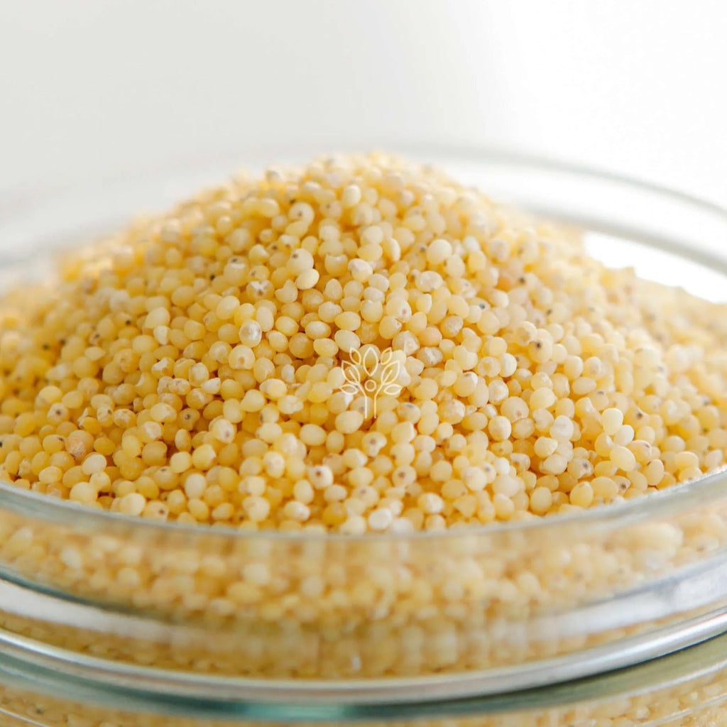 Millet is a tasty grain with a slightly sweet and nutty flavour. This highly nutritious grain is gluten-free and non acid-forming, which makes it easy to digest. Dehulled Millet is most commonly used in cooked cereals and baked goods.