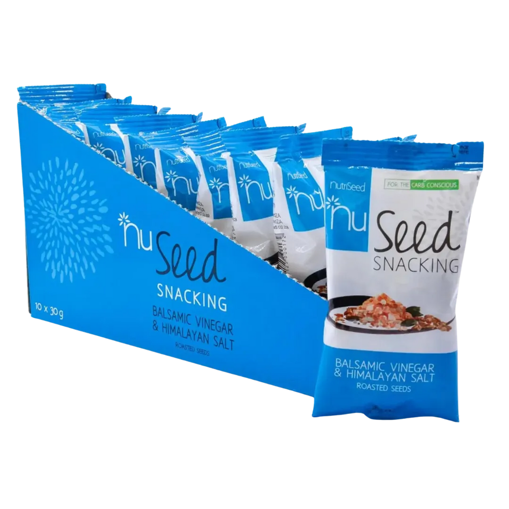 Experience the flavors of our NuSeed 10 x 30g dispenser box, featuring a savory mix of sunflower, pumpkin, and sesame seeds with a balsamic twist. This healthful and convenient dispenser box offers a high-protein, low-carb snack, perfect for sustaining energy and satisfying salt cravings. Enjoy these delicious seeds as a crunchy salad topper, a hummus enhancer, or a guilt-free alternative to traditional snacks, all while embracing a nutritious lifestyle.