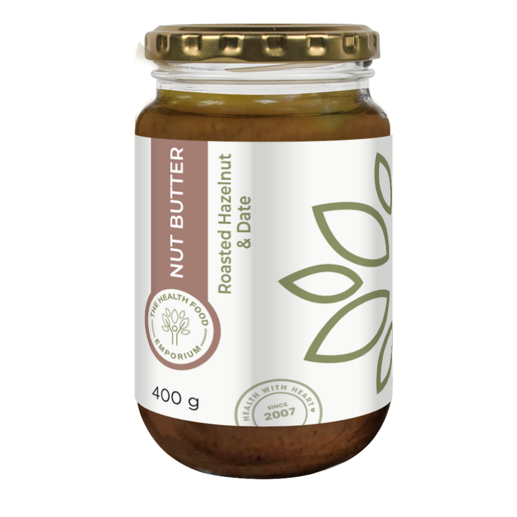 This delicious creamy nut butter is made from raw dates and oven roasted hazelnuts that are ground into a fine paste. It is packed with protein, healthy fats, and fibre.