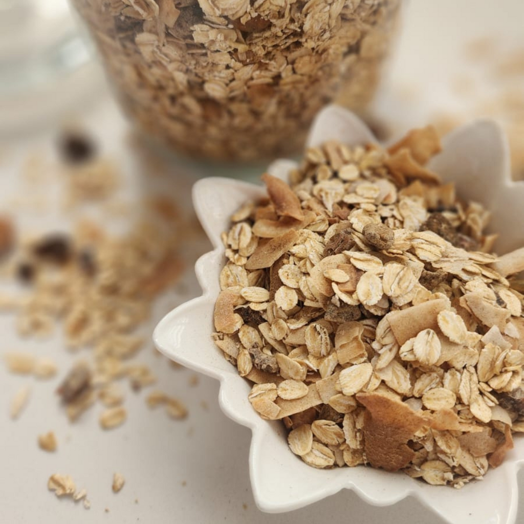 Start your day with a nutritious and delicious serving of Bircher Muesli. This blend of gluten-free rolled oats, dried fruits, nuts, and a hint of cinnamon is perfect for a high-energy, high-protein breakfast that's also rich in dietary fiber and free from added sugars.