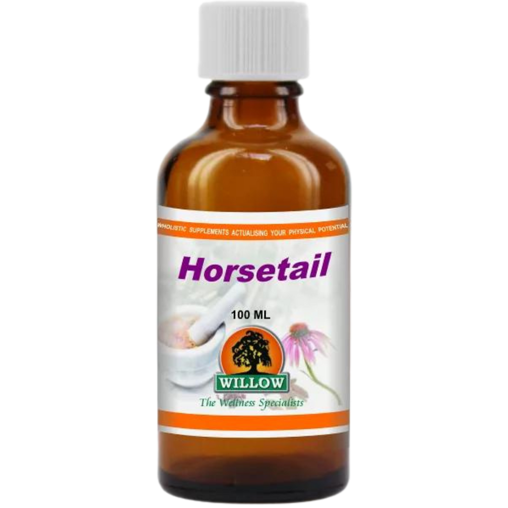 Enhance your wellness routine with Willow Wellness Horsetail Tincture, a natural supplement made from ethanolic extracts of Equisetum Arvense. Known for its high silica content, Horsetail supports healthy hair, skin, nails, and overall vitality.